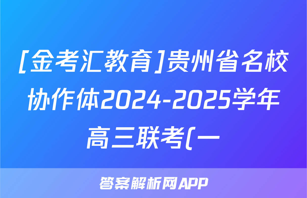[金考汇教育]贵州省名校协作体2024-2025学年高三联考(一)1语文答案正在持续更新,本期2024衡中同卷单元卷答案网为大家整理了相关试题及答案,供大家查缺补漏,高效提升成绩。